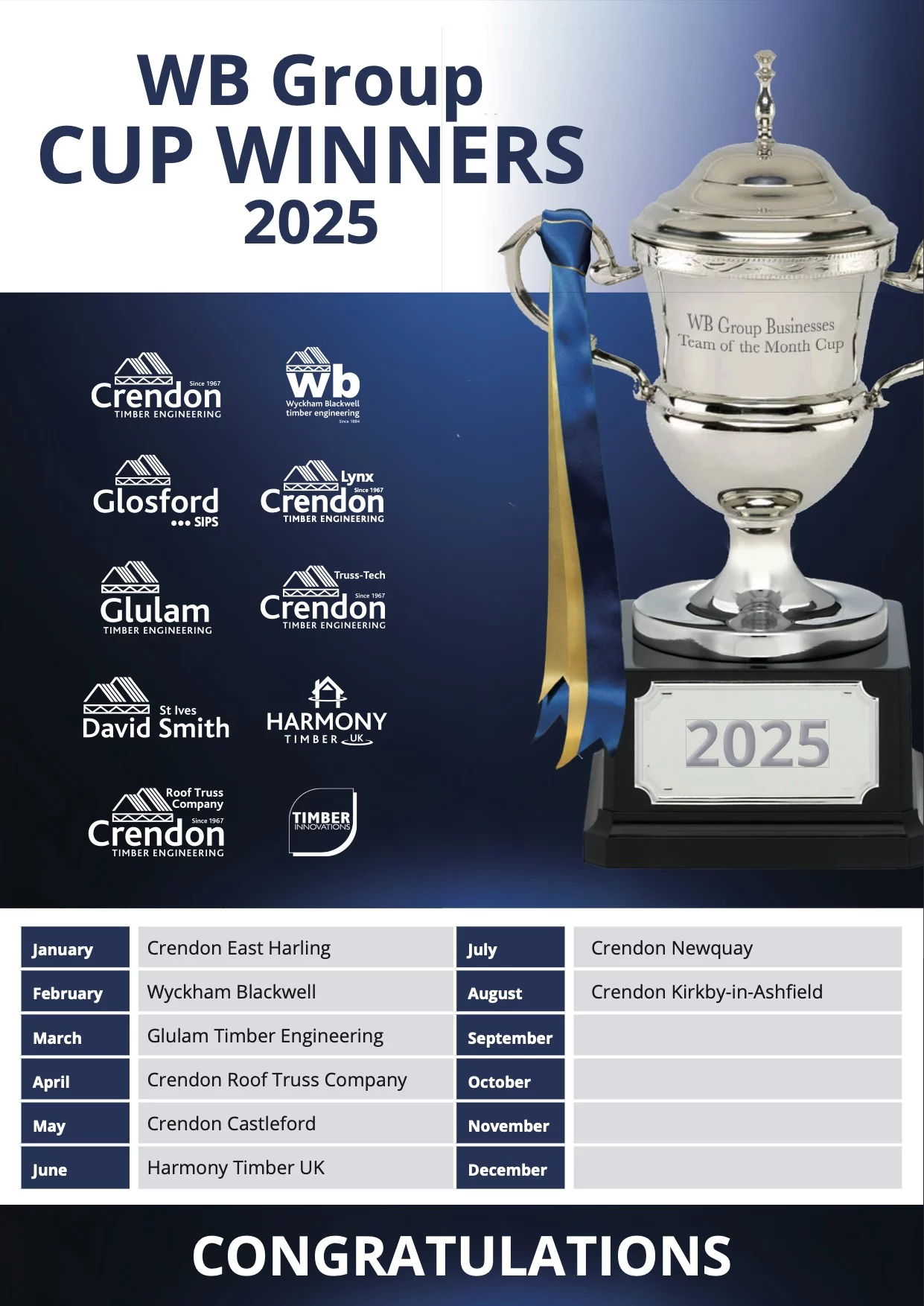 Congratulations to Crendon Timber Engineering, Kirkby-in-Ashfield who are the Wyckham Blackwell Group – Team of the Month for August 2025.